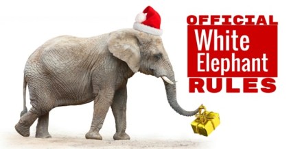 WHITE ELEPHANT Gift – an item you no longer need or want…unusual, or indescribably tacky is best…