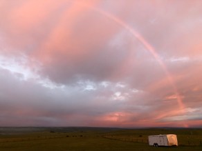 I woke up early and before I got out of bed I prayed, “LORD, I’m not ready for this.  Would you just let me know You’re with me?  I can’t do this without You.”  I came downstairs and looked out the window and beheld the most glorious rainbow and sky I had ever seen!  Immediately Genesis 9:16 came to mind: “Whenever the rainbow appears in the clouds, I will see it and remember the everlasting covenant between God and all living creatures of every kind on the earth.”